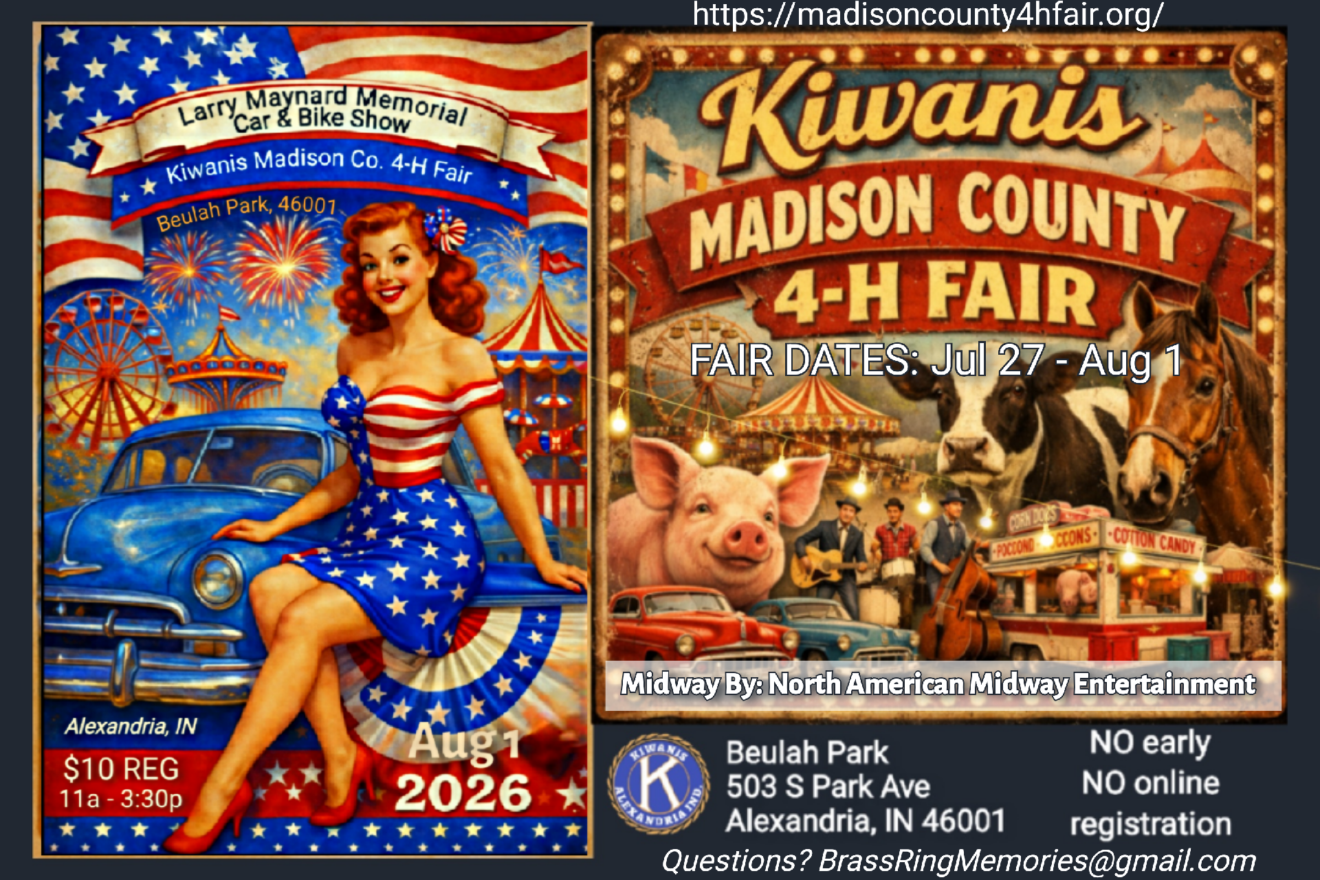 On the last day of the fair (Saturday, Aug 1st) will be the Larry Maynard Memorial Car & Bike Show held on the fairgrounds in front of the pool house along highway 9.